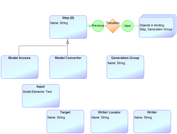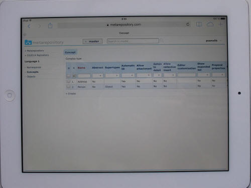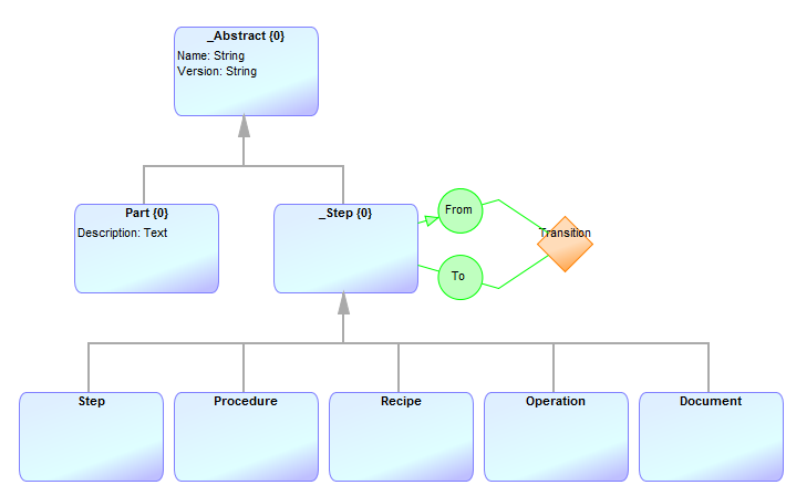 The master craftsmen were asked to send screenshots of the resulting languages and models (anonymized where necessary). Below are the metamodels on the left, and example models on the right.